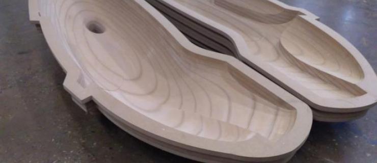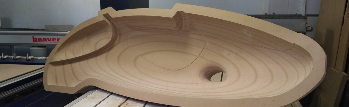 Из качественных модельных плит набирается необходимая толщина заготовки, из неё по составленной программе фрезеруется форма на ЧПУ станке. Затем форма вышкуривается, покрывается, шлифуется. Такая оснастка может выдержать до нескольких сотен формовок