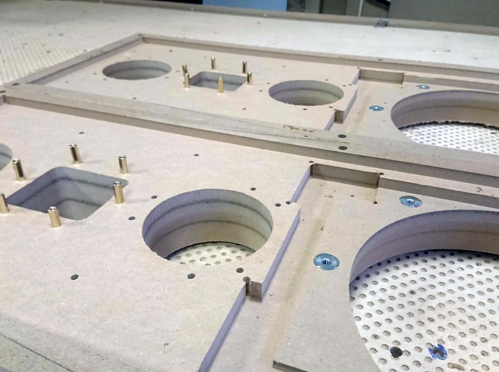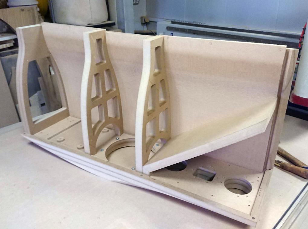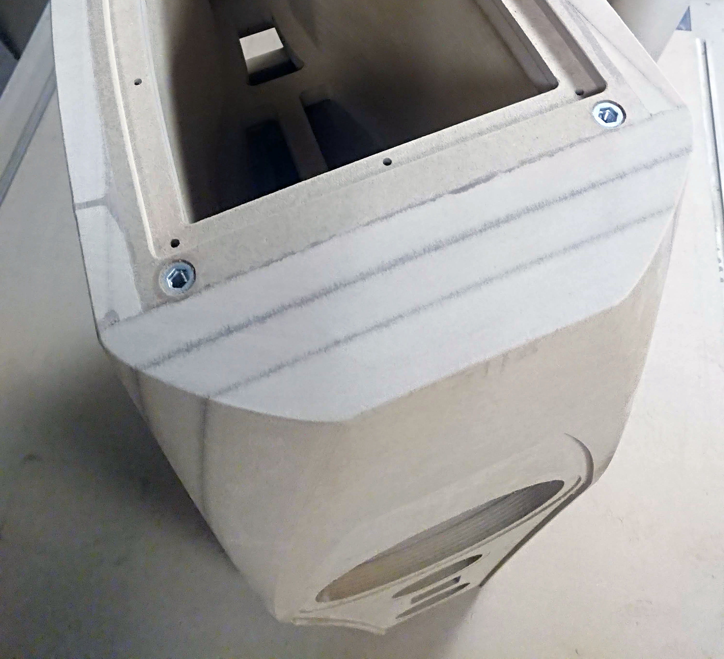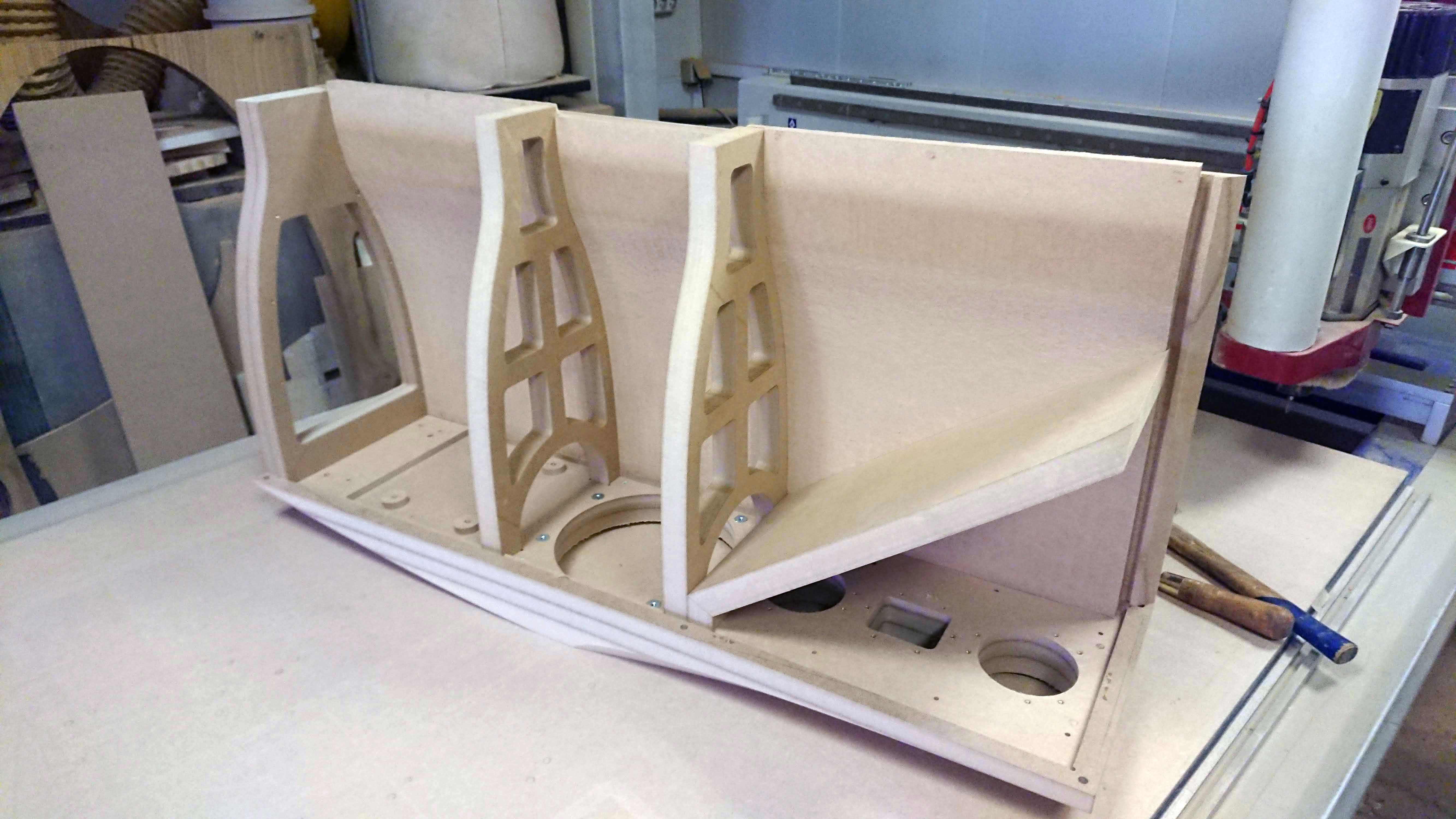 Корпус построен из МДФ, заказчик проекта AudioStandArt. Главная задача от заказчика: оптимизировать технологичность изготовления и сборки в рамках существующей формы. Используя только МДФ в качестве основного материала корпуса.