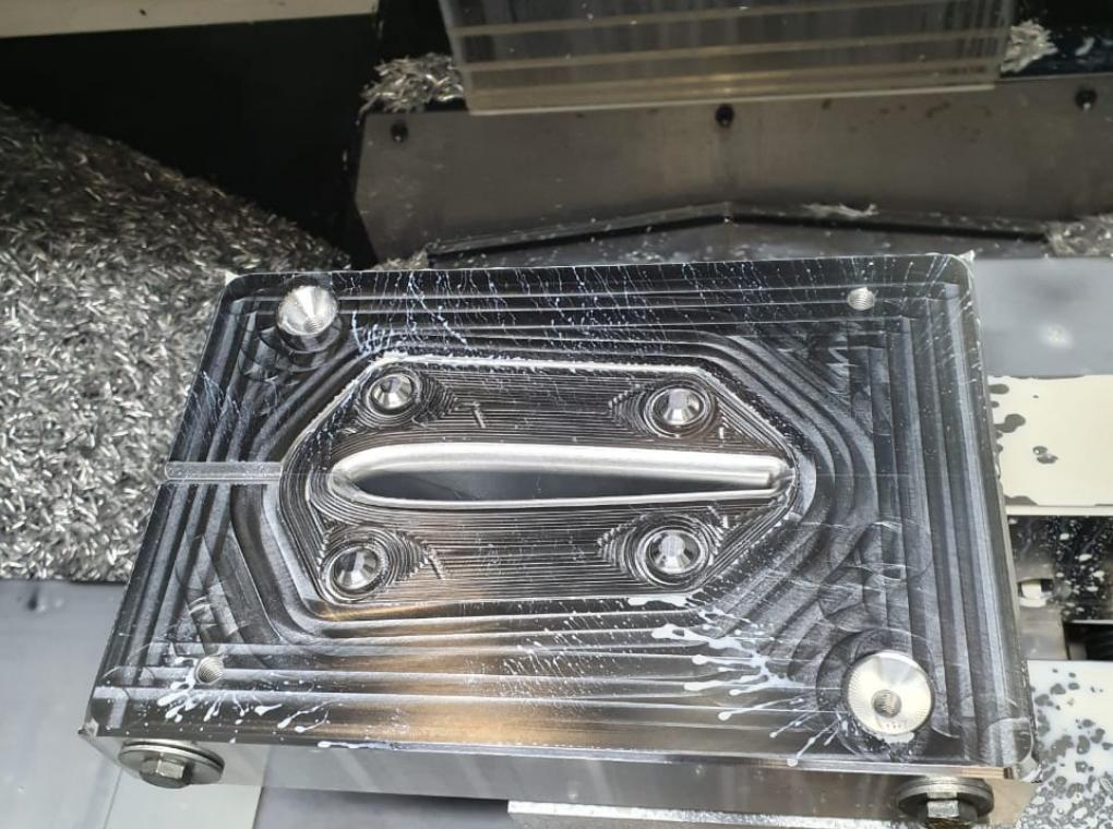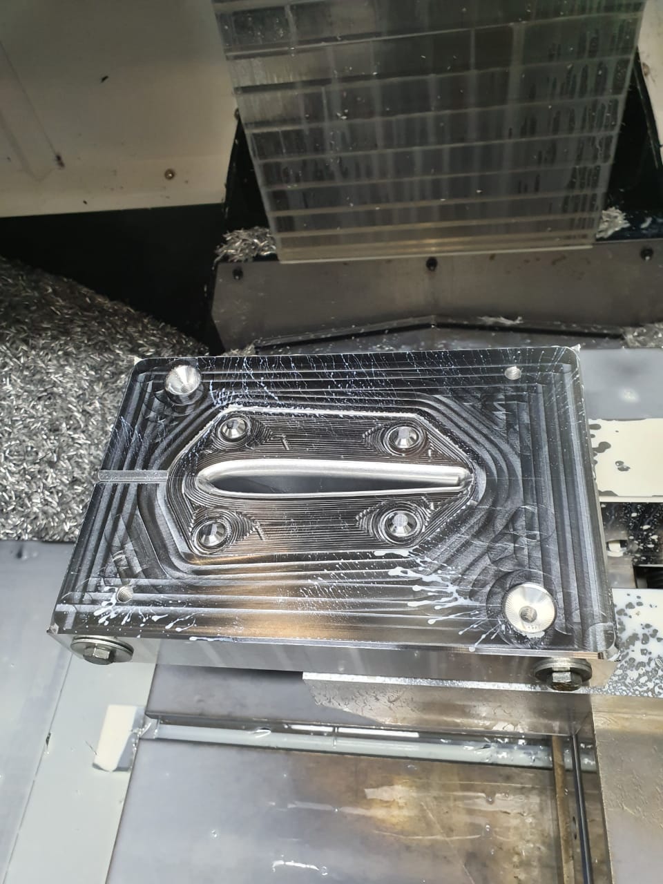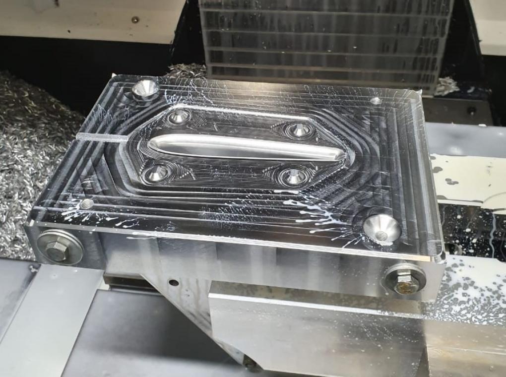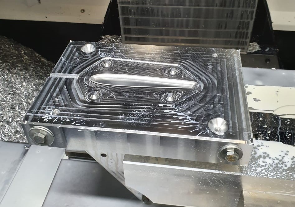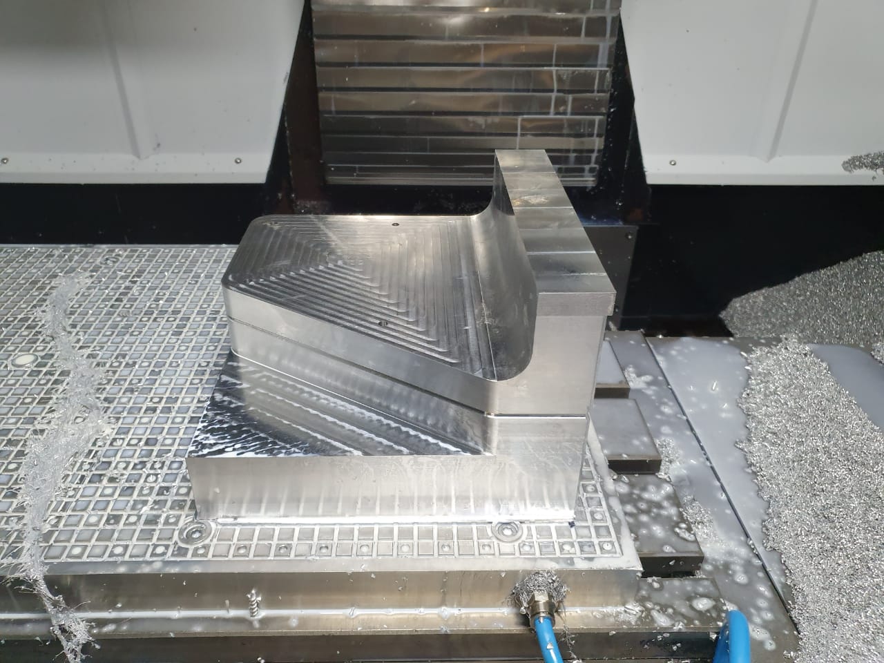 На видео представлен процесс обработки одной из частей матрицы для изготовления карбонового плавника. Фрезеровка выполняется из алюминиевой заготовки.
