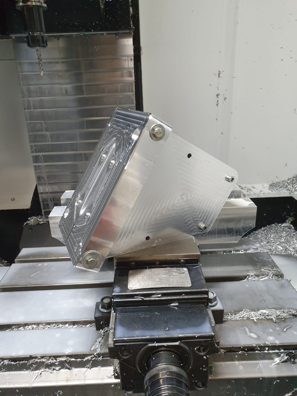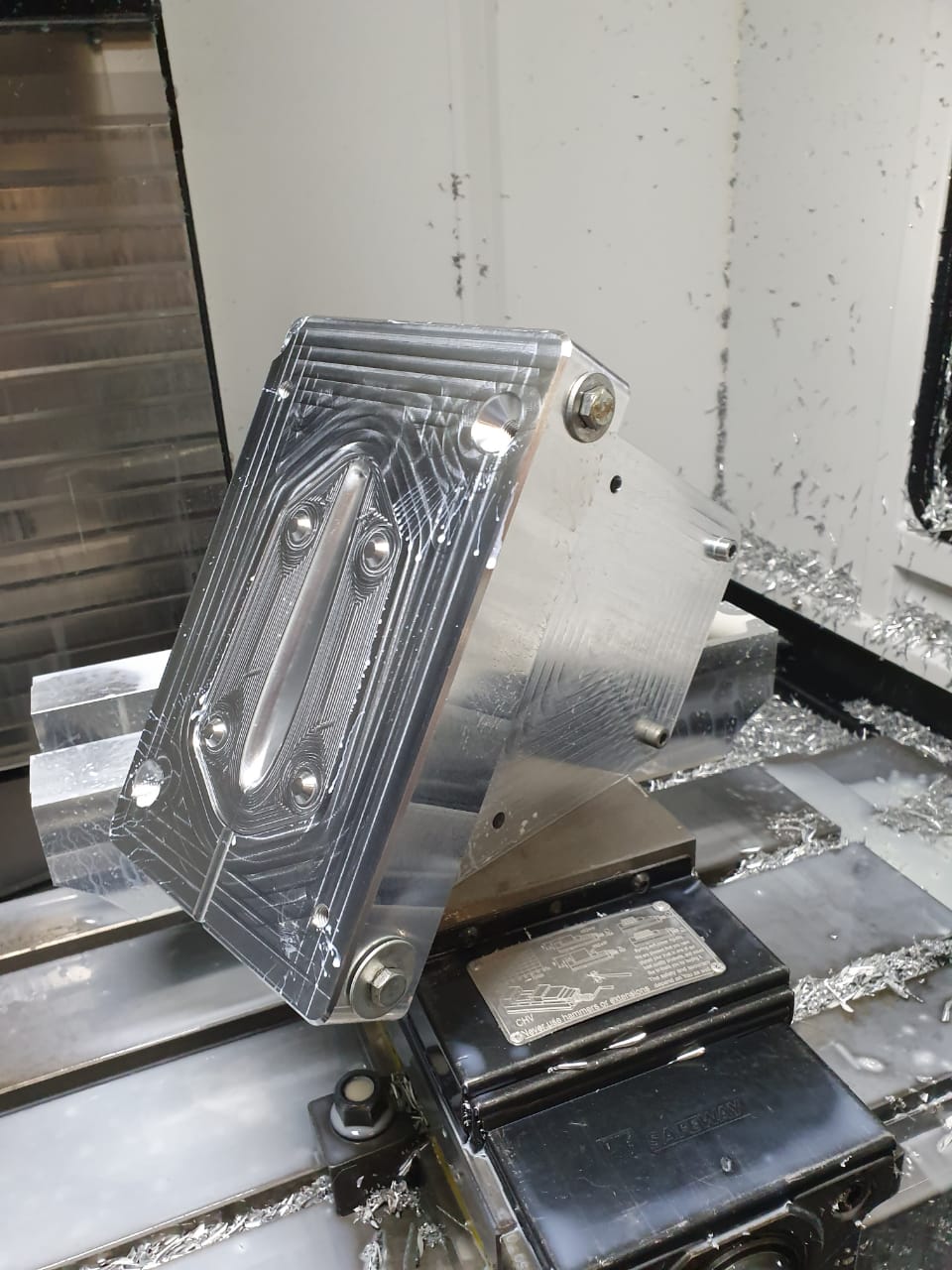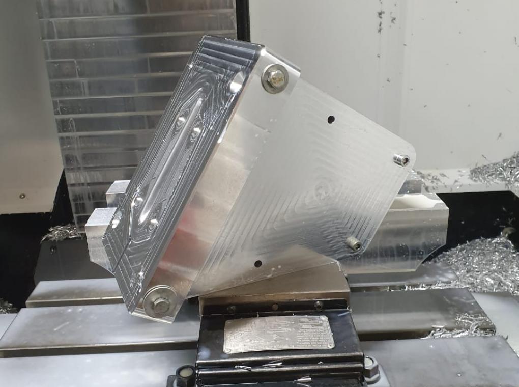 В рамках данного проекта КБ Прототип выполняла фрезеровку матрицы из алюминия. Матрица сборная, состоит из 3 частей. С помощью матрицы из карбона будет изготовлен плавник для моторизованного сёрфинга JetSurf. В соответствии с требования по гидродинамике необходимо соблюсти точность конструкции, это обеспечивается за счёт 3D фрезеровки по твердотельной модели.
