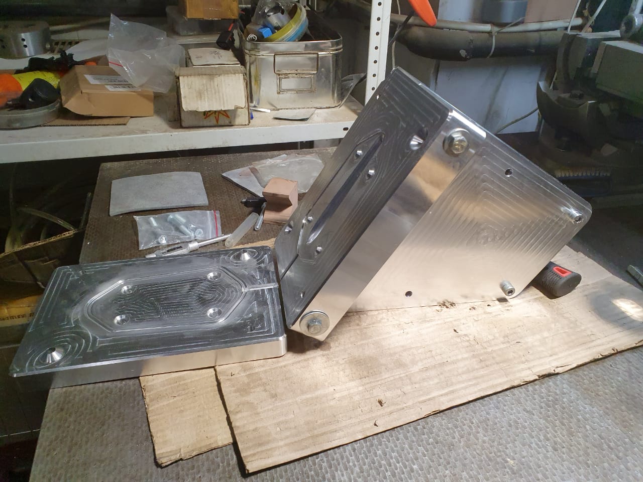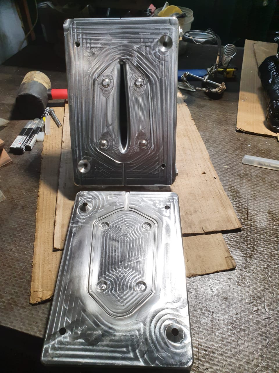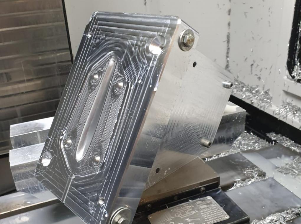 В рамках данного проекта КБ Прототип выполняла фрезеровку матрицы из алюминия. Матрица сборная, состоит из 3 частей. С помощью матрицы из карбона будет изготовлен плавник для моторизованного сёрфинга JetSurf. В соответствии с требования по гидродинамике необходимо соблюсти точность конструкции, это обеспечивается за счёт 3D фрезеровки по твердотельной модели.
